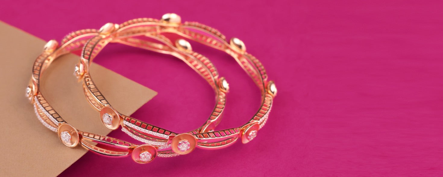 From delicate gold filigree to bold contemporary designs, our bangles celebrate individuality and grace. Whether you prefer the subtle shimmer of diamond accents or the warmth of intricate enamel work, each creation promises to elevate your every gesture with effortless charm.
